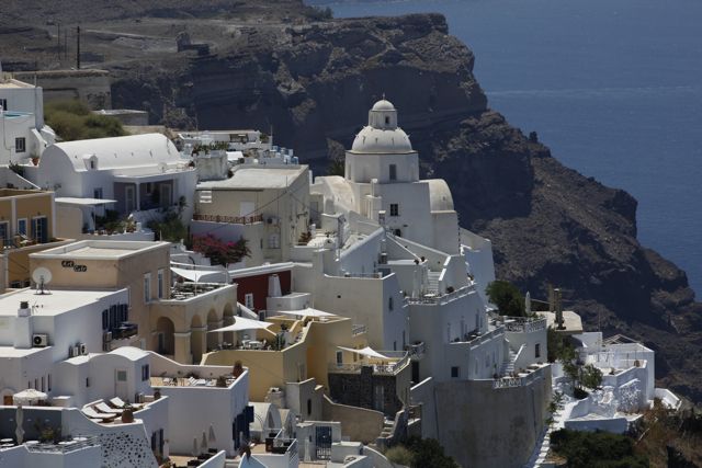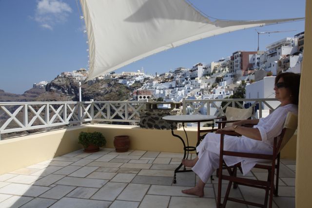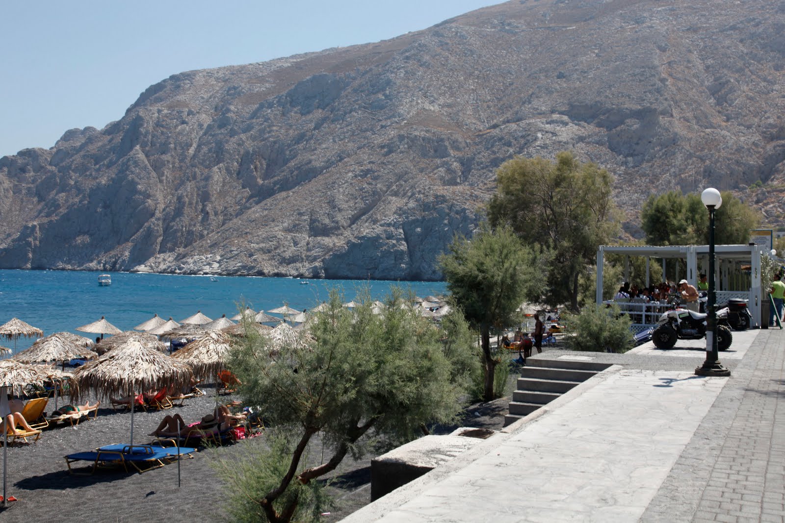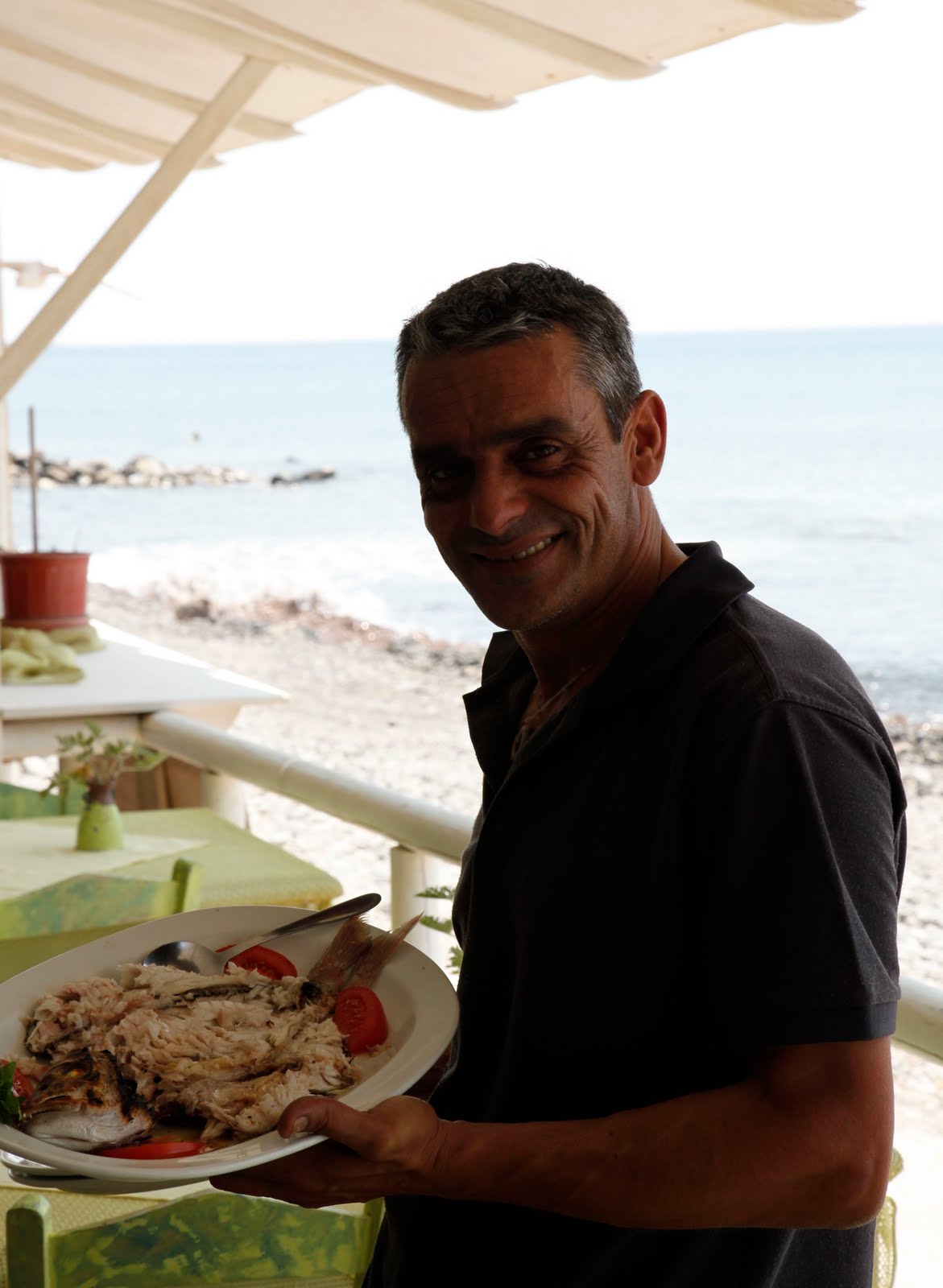 Responding to a tip from the locals, Jon and I took a bus to Akrotiri. Melina’s Taverna was on the water, the first taverna on the beach. In Greece, if someone has a taverna, it’s not long before a 2nd, a 3rd, a 4th and so on open up and before you know it there is a string of taverna’s all competing for the limited customers. But in a country who’s main industry is tourism it kind of makes sense.