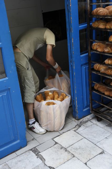 Melina’s is the first taverna. The tables were covered in brilliant lime green table cloths and the chairs were painted in the same fresh colour. It was beautiful against the white building and the stunningly blue sea. The owner, Niko opened this little taverna almost 16 years ago and named it after his first daughter.