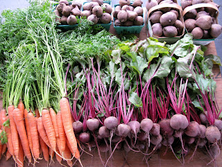 The room is full of food. Pails of colourful heirloom tomatoes, small bins of sprouts and flowers, baguettes piled high on the top of a baking rack. Inside the rack are layers of sweet potato medallions and potato rosti triangles.