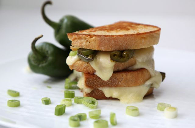 Load a grilled cheese with whole roasted, fiery Jalapeno peppers and juicy slices of heat-moderating avocado; a slice of cheese on the bottom of the peppers and another on top of the avocado and grill away. Gourmet grilled cheese sandwiches may be messy to eat, but the flavour combinations are totally out of this world.