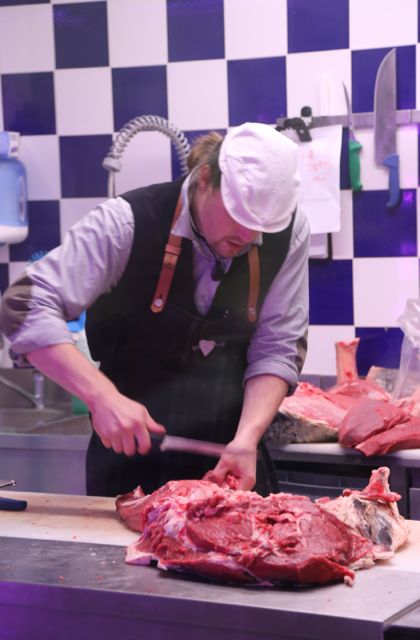 Like a restaurant with an open kitchen Nase Maso’s has an open butcher block buzzing with blood stained white jacketed butchers carving, shopping and slicing. It’s all too exciting for our small group and they start chatting about their mutual love of charcuterie.