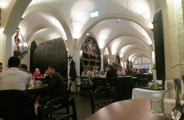 We had arrived at our next destination, Zvonice. It’s a restaurant on the 8th floor of a 600 year old bell tower. The beautiful room had stonewalls, small windows with glorious views, giant beams and a huge brass bell named Mary in the centre. Here we ate a yummy sauerkraut soup they call Staroceska Zeinice or Old Bohemian Sauerkraut Soup. The thick soup had chunks of robust deer sausage, a quenelle of mashed potatoes, slivers of chanterel mushrooms and uberfine threads of fermented cabbage that acted more like melted, stringy cheese than sauerkraut in the soup. All was drizzled with basil oil and a dollop of sour cream. It’s a super mouth warming, succulent soup with a bottom weight of savoury sausage interjected with frequent spikes of sauerkraut acidity and earthy flavours that linger long on the palate. It’s amazingly delicious and we all ask for the recipe.