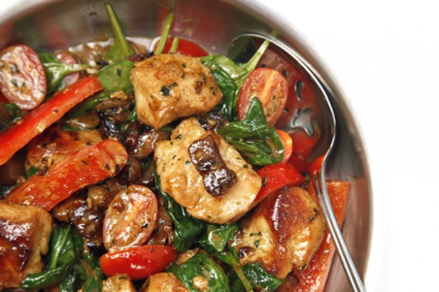 Eggplant Parmesan: In the winter you’ll find me roasting slices of eggplant and red peppers. In the skillet sizzling away will be mounds of spinach with chunks of garlic. Then I pack it away in the refrigerator until I’m ready for a quick meal. I pile garlicky spinach over a slice of eggplant and top with a few slices of soft red pepper. Then I grate a little Parmesan cheese overtop before popping it into the oven to warm it through. Not only is it quick, simple and delicious, but it’s my favourite five ingredient meal.